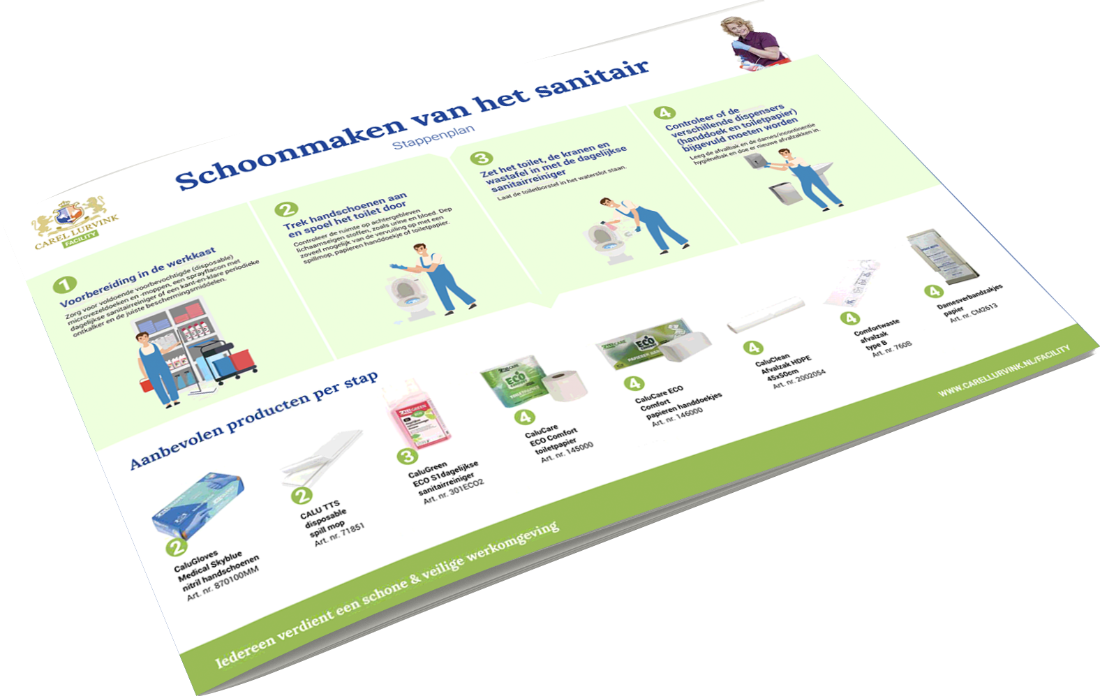 Binnen de facilitaire sector spelen vragen als: welke schoonmaakmethode past bij mijn gebouwtype, hoe voorkom ik verspilling van middelen, hoe borg ik consistente kwaliteit en hoe zorg ik dat medewerkers veilig en volgens vaste instructies werken. Daarnaast groeit de behoefte aan circulaire oplossingen en digitale ondersteuning bij bestellen en procesbeheer. Het Facility kenniscentrum van Carel Lurvink bundelt praktische kennis, werkplannen en achtergrondinformatie die facilitair verantwoordelijken helpen om onderbouwde keuzes te maken, medewerkers te trainen en schoonmaakprocessen te optimaliseren. De beschikbare documenten zijn ontwikkeld op basis van praktijkervaring binnen uiteenlopende facilitaire omgevingen, zoals kantoren, onderwijsinstellingen en publieke gebouwen en sluiten aan op actuele thema's, zoals circulair werken, ergonomisch en effectief schoonmaken en veilig gebruik van materialen.