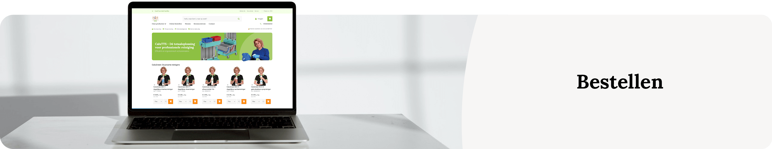 U kunt een artikel in de winkelwagen plaatsen met de oranje button In winkelwagen. Door op het icoontje van de winkelwagen te klikken (rechts bovenin), opent u de winkelwagen. Hier kunt u aantallen aanpassen, artikelen verwijderen of bijvoorbeeld een eigen referentie toevoegen.Order plaatsen