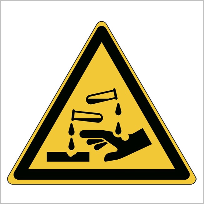 Waarschuwingspictogrammen: Deze gele driehoekige borden waarschuwen voor potentiële gevaren. Denk aan gevaar voor elektrische schokken, bijtende stoffen of een gladde vloer. |
