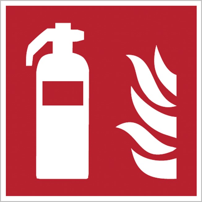 Brandbestrijdingspictogrammen: Deze rode vierkante borden geven aan waar brandbestrijdingsmiddelen zich bevinden, zoals de brandblusser, brandslanghaspel en het brandalarm. |