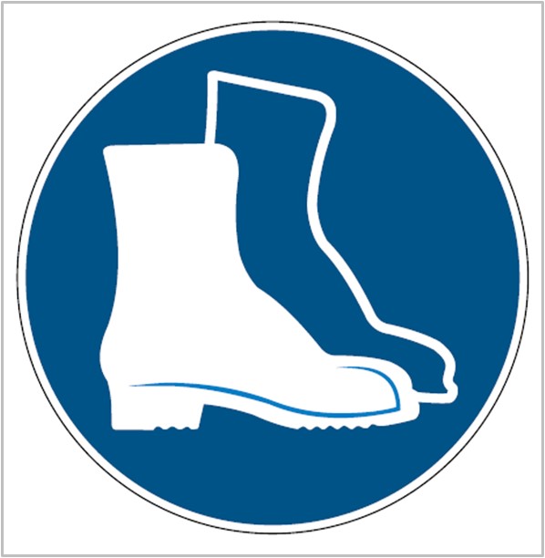 Verplichtingspictogrammen: Dit zijn ronde borden met een blauwe achtergrond. Deze geven een verplichting aan, zoals het dragen van gehoorbescherming, veiligheidsbil of veiligheidsschoenen. |