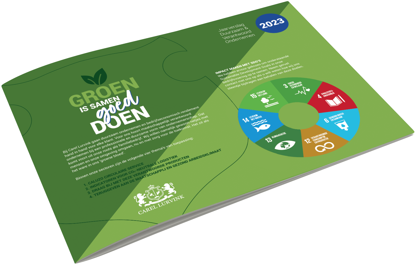 Bent u benieuwd naar wat we nog meer doen om duurzaamheid en verantwoordelijkheid te vergroten? Neem dan een kijkje in ons Jaarverslag ‘Groen is samen goed doen’, waarin we onze strategieën, resultaten en toekomstvisie toelichten.Heeft u specifieke vragen over de Green Product Index (GPI) of onze CALUZO Circulaire Service? We staan voor u klaar! Neem gerust contact met ons op. Wij laten u graag zien hoe u met onze oplossingen eenvoudig een grotere impact kunt maken op het gebied van duurzaamheid, circulariteit en verantwoord ondernemen. Samen maken we het verschil.