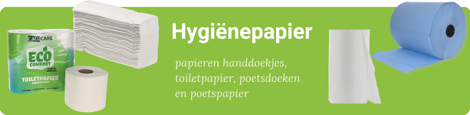 Hygiënepapier omvat een breed assortiment aan papieren producten die speciaal gemaakt zijn voor persoonlijke of oppervlaktereiniging. Bij Carel Lurvink bestaat het aanbod voornamelijk uit producten in bulkformaat zoals toiletpapier, papieren handdoekjes, poetspapier, poetsdoeken en andere hygiëne-oplossingen. Deze producten worden vaak geleverd in praktische verpakkingen zoals jumbo-rollen, dispenserverpakkingen of bulkverpakkingen om aan de behoeften van bedrijven en instellingen te voldoen. Professioneel hygiënepapier kan gemaakt zijn van verschillende materialen, waaronder traditioneel houtpulp, gerecycled papier of duurzame alternatieven zoals Miscanthus. Papier gemaakt van miscanthus (ook wel olifantsgras genoemd) is sterk en een duurzamere keuze dan houtpulp.