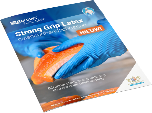 Flyer: CaluGloves Food Safe Strong Grip Latex handschoenen