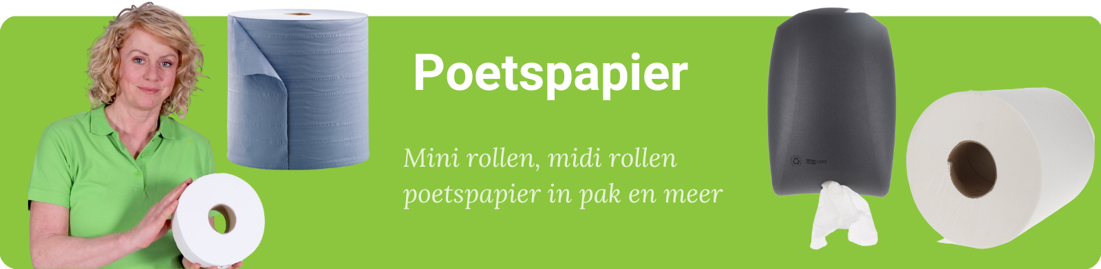 Poetsrollen in mini formaat zijn kleine, compacte rollen poetspapier die ideaal zijn voor kleinschalige werkplekken zoals keukens, kantoren en mobiele werkstations. Door hun compacte formaat zijn ze gemakkelijk op te bergen en te gebruiken in ruimtes waar een grote poetsrol niet handig is. Ze worden veel ingezet in horecagelegenheden en kleine werkplaatsen voor het poetsen van gemorste vloeistoffen en etensresten en zijn vooral bedoeld voor lichte schoonmaakwerkzaamheden.
