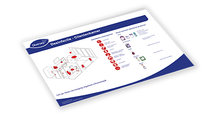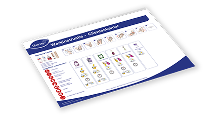 Klik op een van de afbeeldingen om werkinstructies, desinfectiekaarten en controlelijsten te downloaden om verschillende ruimtes binnen zorginstellingen te reinigen en desinfecteren.