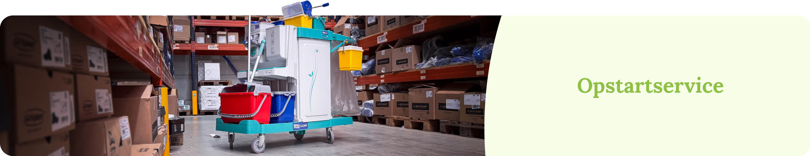 Binnenkort maken we dit nog gemakkelijker met onze opstartpakketten. Volledig ingerichte werkwagens, zodat u direct kunt beginnen met schoonmaken.