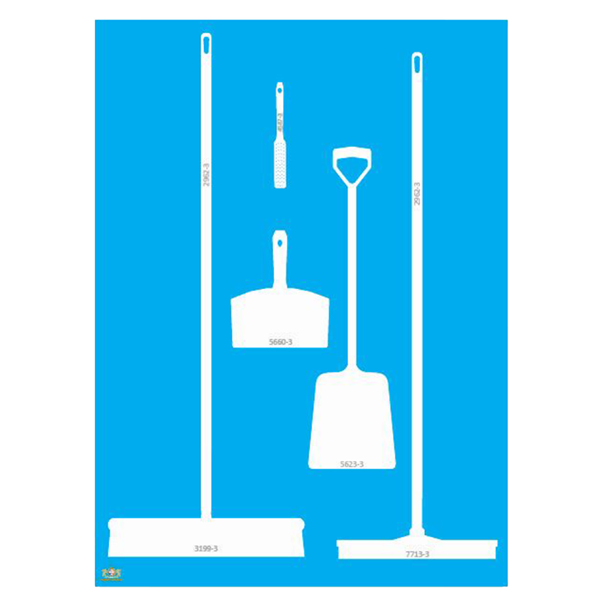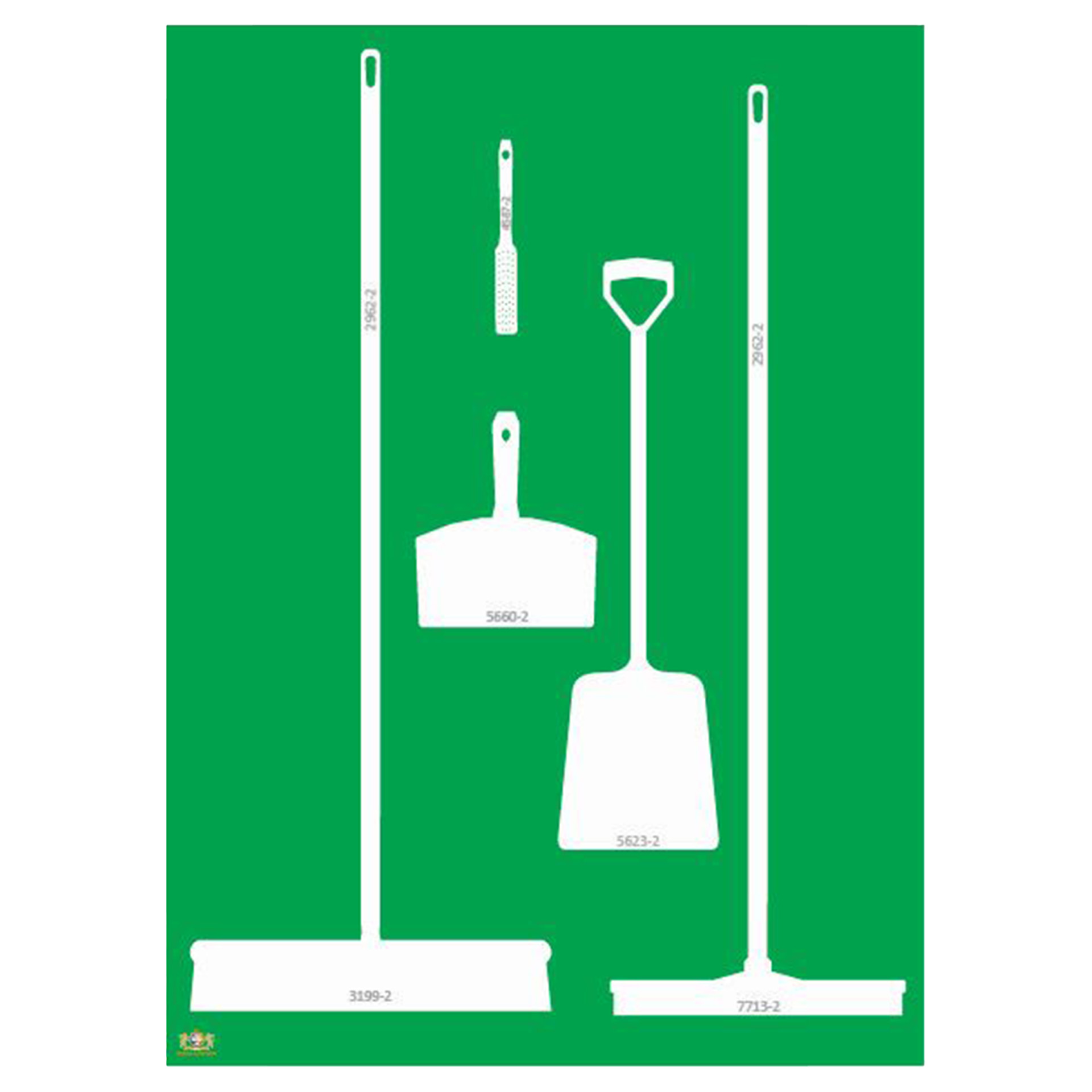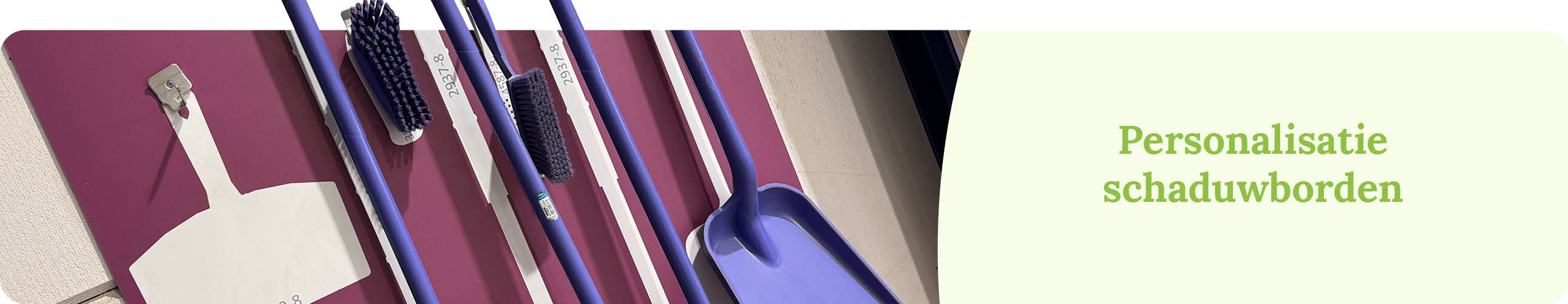 Steeds meer organisaties maken gebruik van zogenaamde schaduwborden voor schoonmaakmaterialen, zoals bezems, stofblikken en handvegers. Een schaduwbord zorgt ervoor dat alle materialen een vaste plaats hebben. Door de schaduwen op het bord valt het op als een onderdeel ontbreekt. Erg overzichtelijk voor de medewerkers en het zorgt voor tijdsbesparing doordat niet meer gezocht hoeft te worden naar de juiste schoonmaakmaterialen.